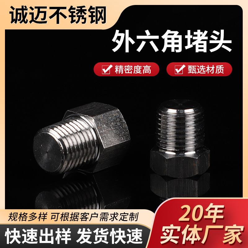 304不锈钢堵头油塞密封丝堵螺塞内外六角堵头圆形带边不锈钢堵头