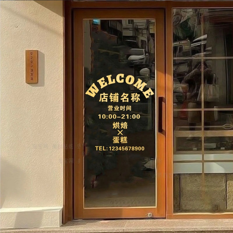 欢迎光临营业时间玻璃门贴纸二维码奶茶蛋糕店服装店橱窗装饰广告