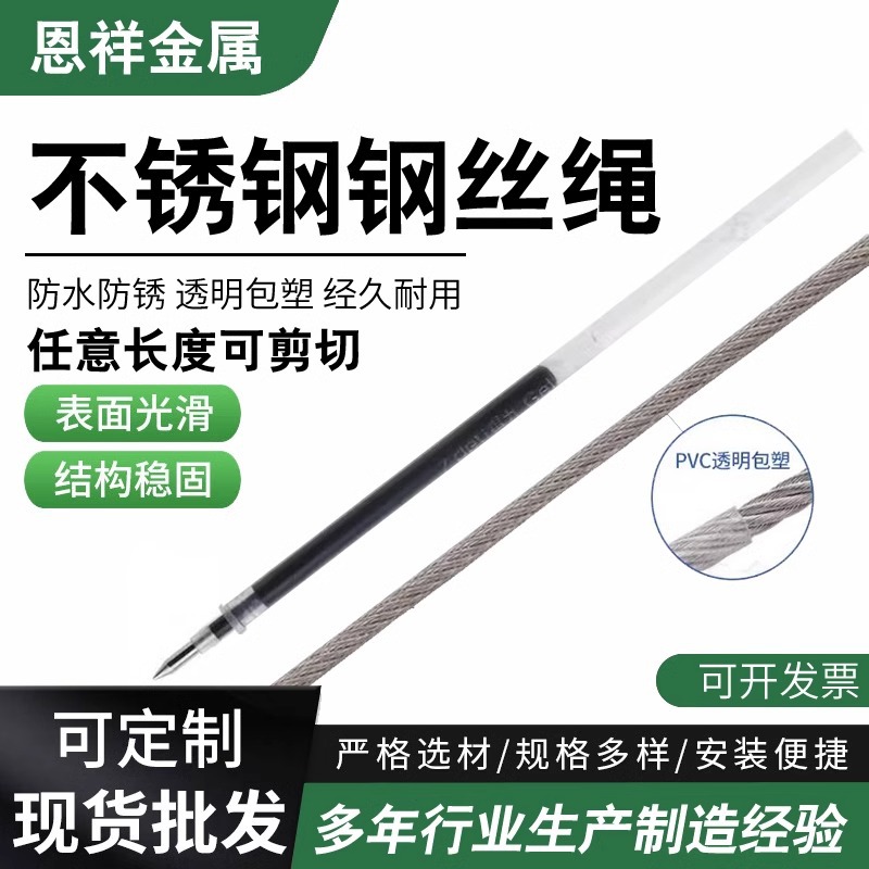 不锈钢包塑钢丝绳pvc透明钢丝绳渔具晾衣护栏绳304包塑钢丝绳