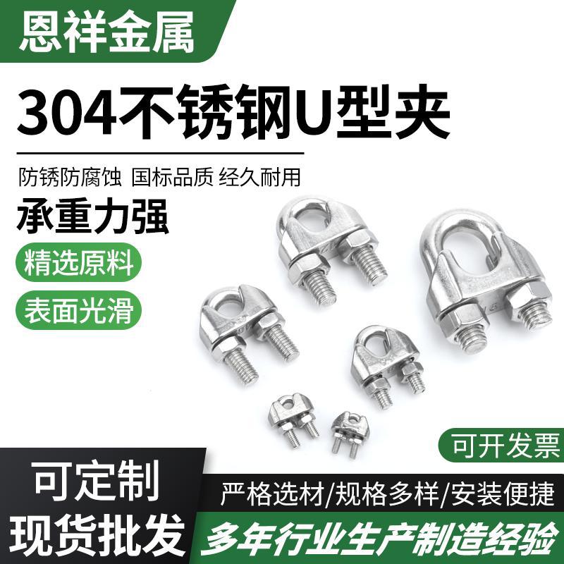 304不锈钢夹头钢丝绳卡头U型卡扣夹绳轧头锁扣钢丝绳紧锁夹紧绳器