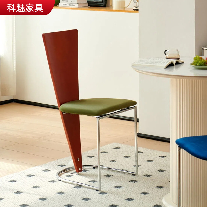 中古靠背椅家用餐桌椅贝塔设计师复古实木椅网红法式镂空不锈钢椅