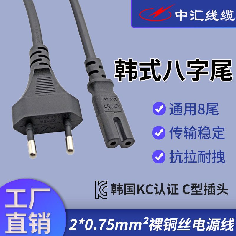 韩式8字尾电源线两芯韩国插头线KC认证纯铜韩国两圆插头线电源线