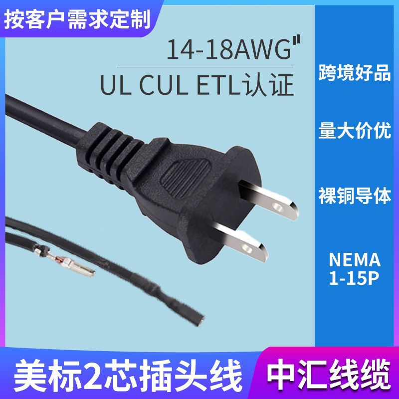 UL美规认证电源线两插美标两芯插头美标NEMA裸铜线材A型插头电源