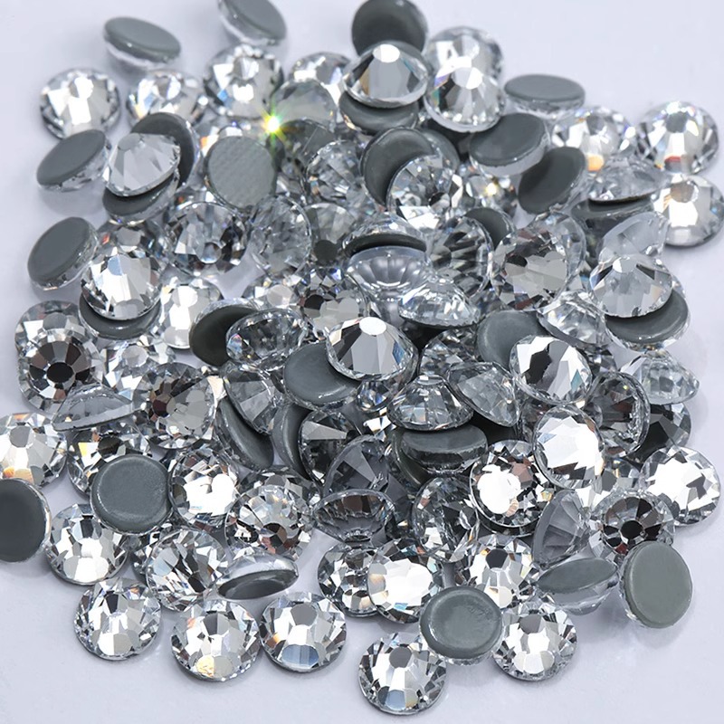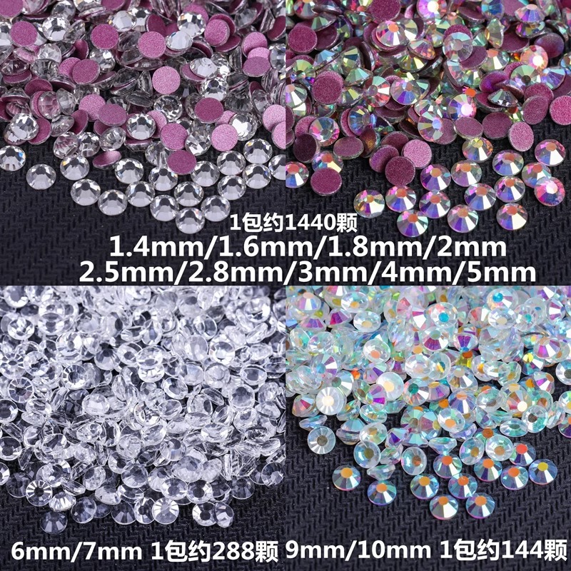 白钻美甲贴钻圆形平底超闪奥钻玻璃亮钻服装礼服DIY水钻水晶钻