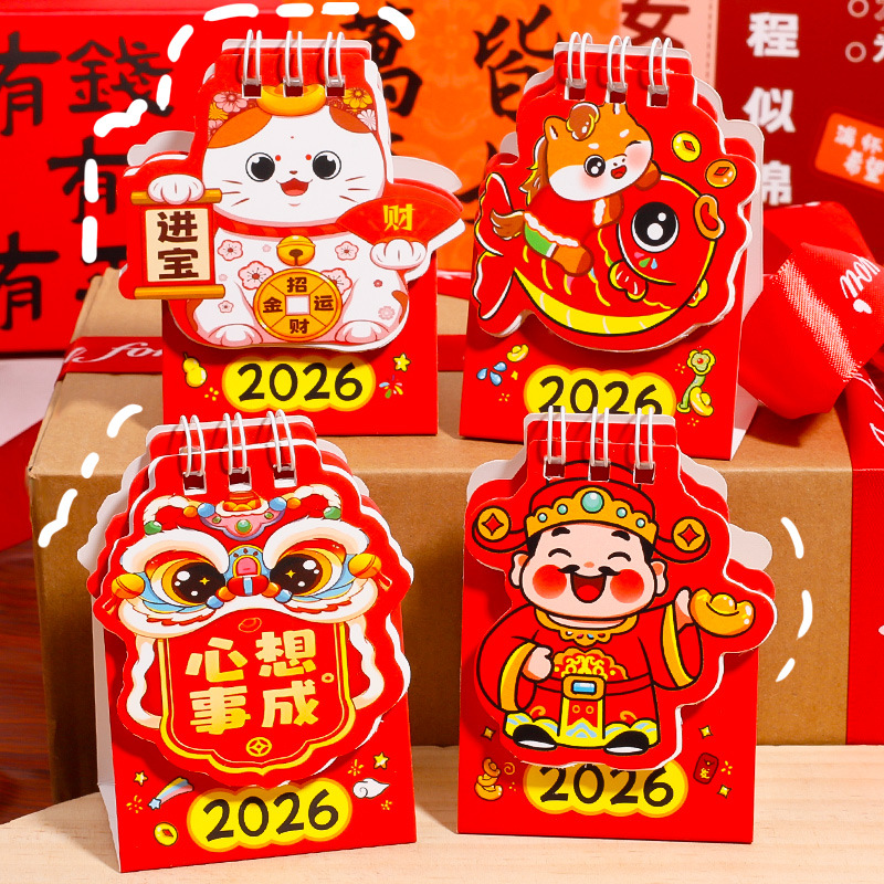 2026新年台历可爱卡通招财猫桌面小摆件学生计事打卡计划台历奖品