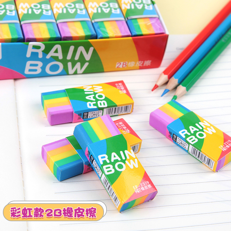 跨境彩虹橡皮擦变色橡皮擦得干净2B橡皮小学生文具奖品办公外贸批