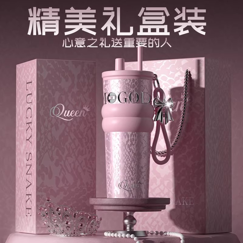高颜值保温杯女生陶瓷内胆大容量运动水杯保冷节日赠礼品吸管杯子