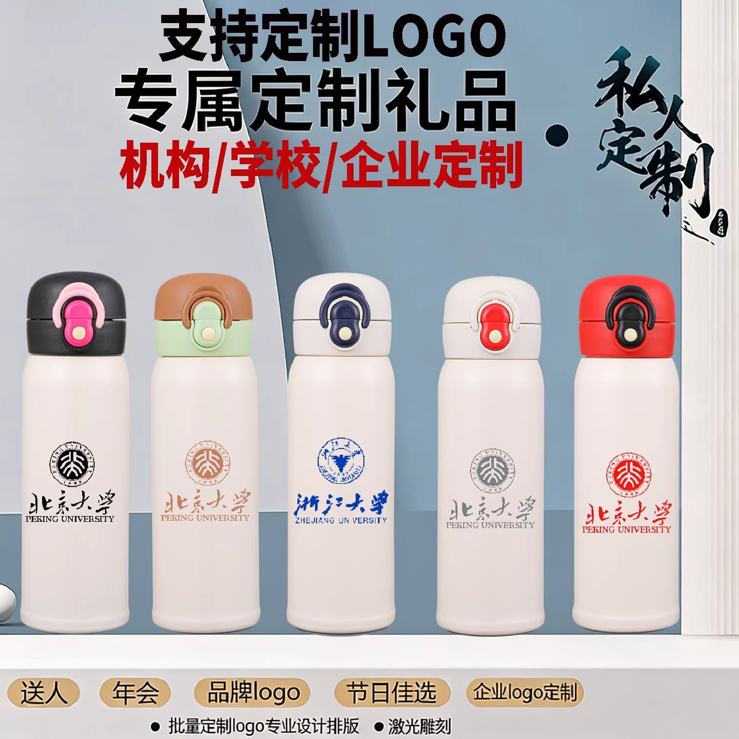 316不锈钢吸管保温杯子刻字学生高颜值男女便携弹盖双饮随行水杯