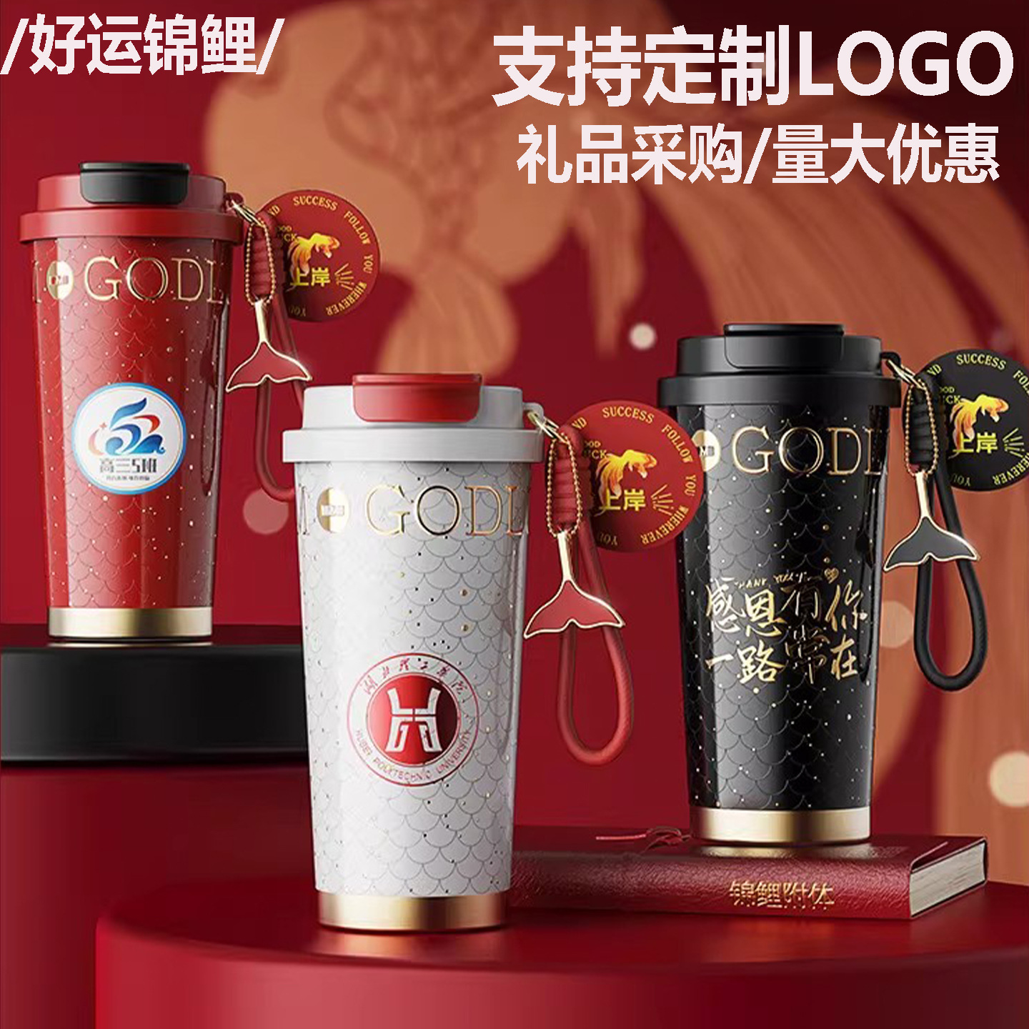 2026新年礼物锦鲤保温杯陶瓷内胆男女生高颜值大容量双饮吸管水杯