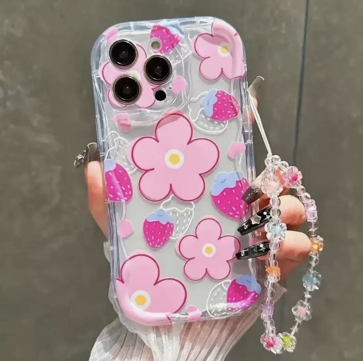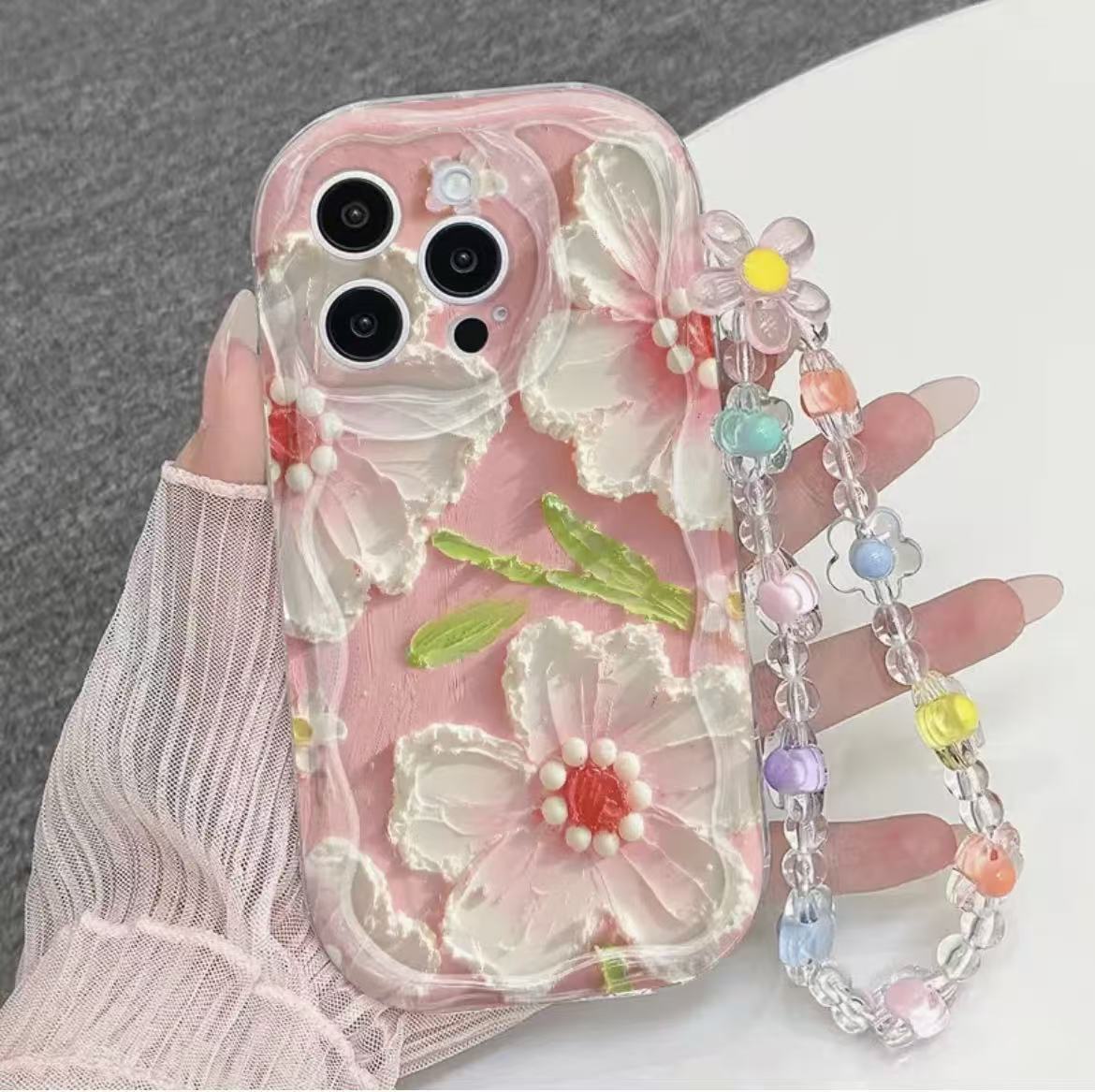 彩绘植物花适用iphone17pro手机壳苹果15手链14pro13promax新款16