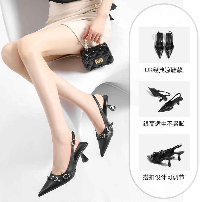 尚案 UR经典黑色凉鞋设计感职业通勤都市白领气质办公室高跟单鞋