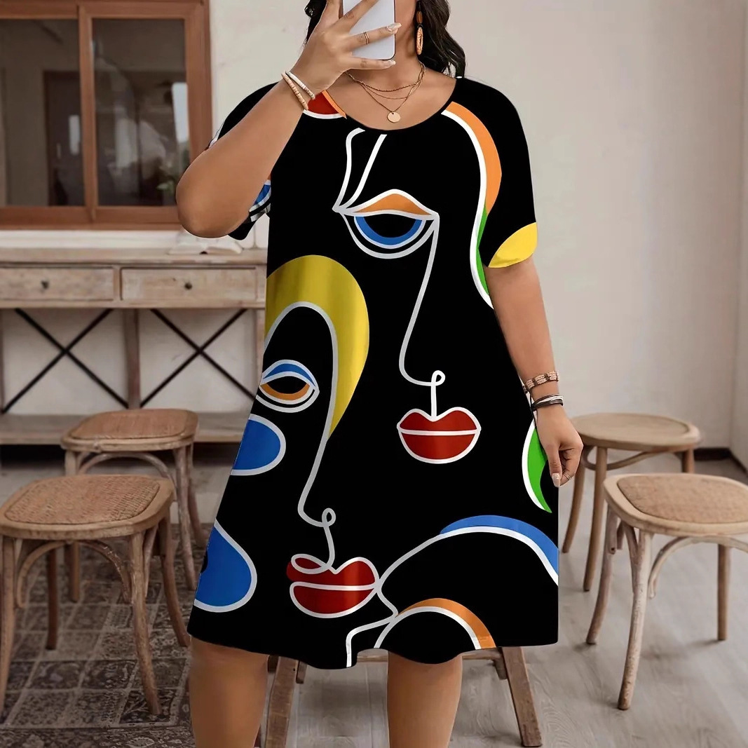 2025新款大码亚马逊跨境宽松休闲3D印花连衣裙