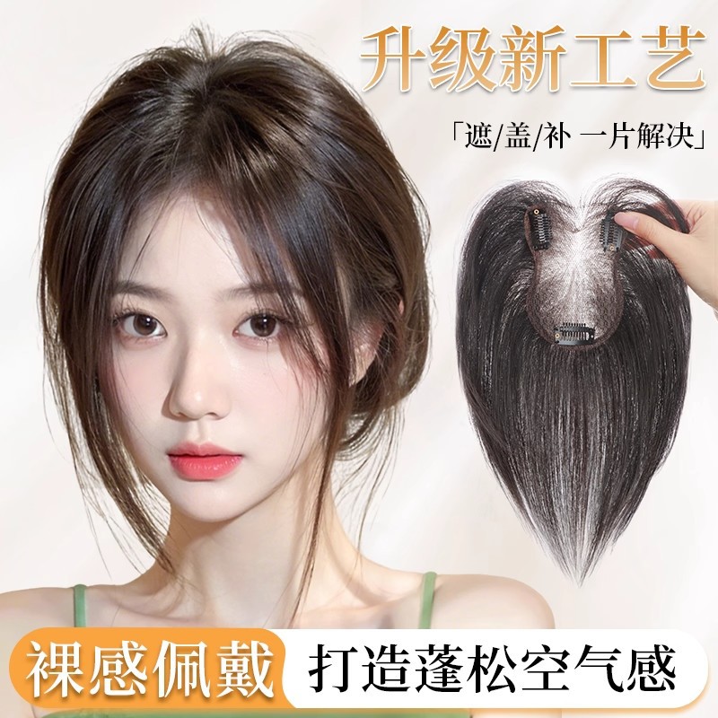 假发片女头顶补发增发量蓬松真发遮白发高颅顶轻薄无痕自然补发片