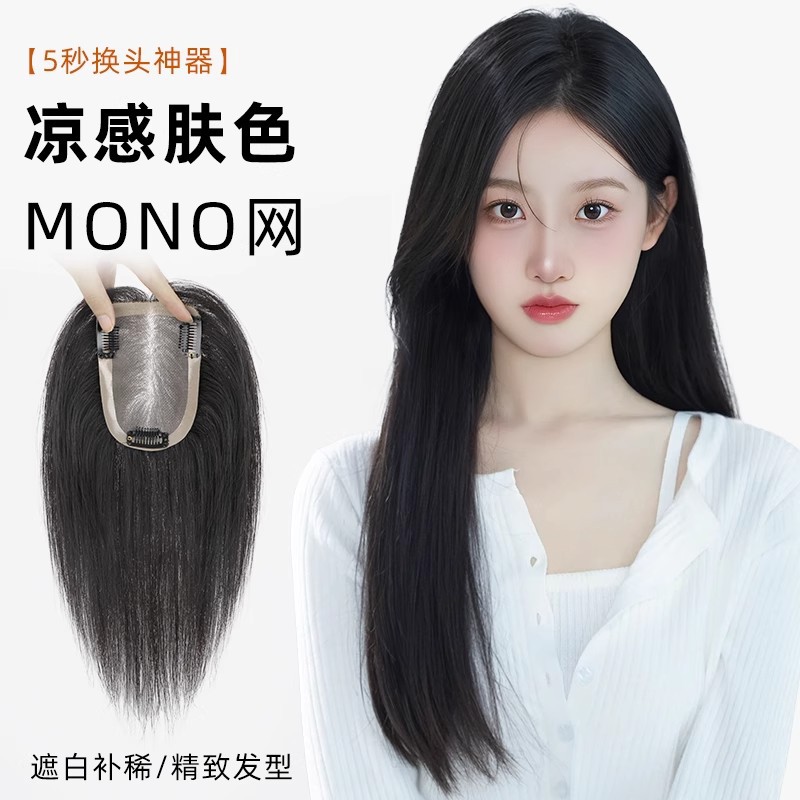 透气假发片女全真发头顶补发增发量遮白发高颅顶无痕片手织显发量