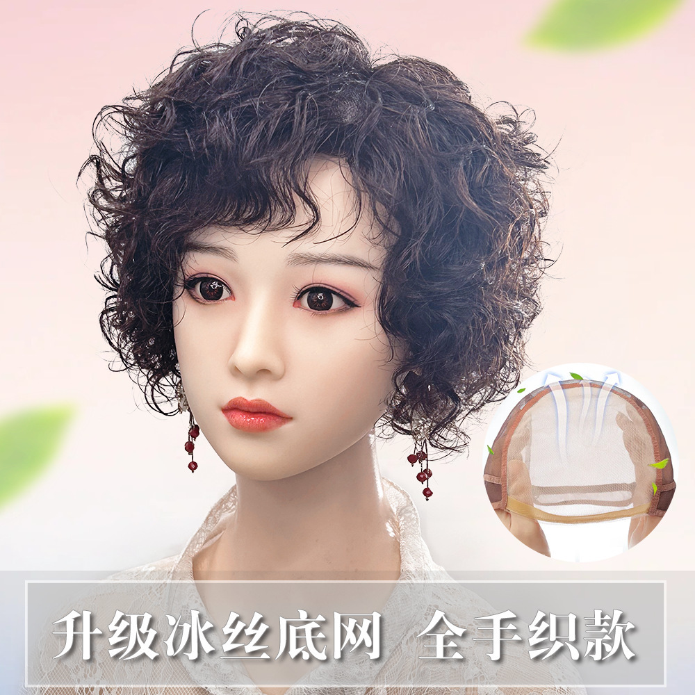 羊毛卷假发套女全真发中老年妈妈款蓬松透气自然短发卷发假发头套