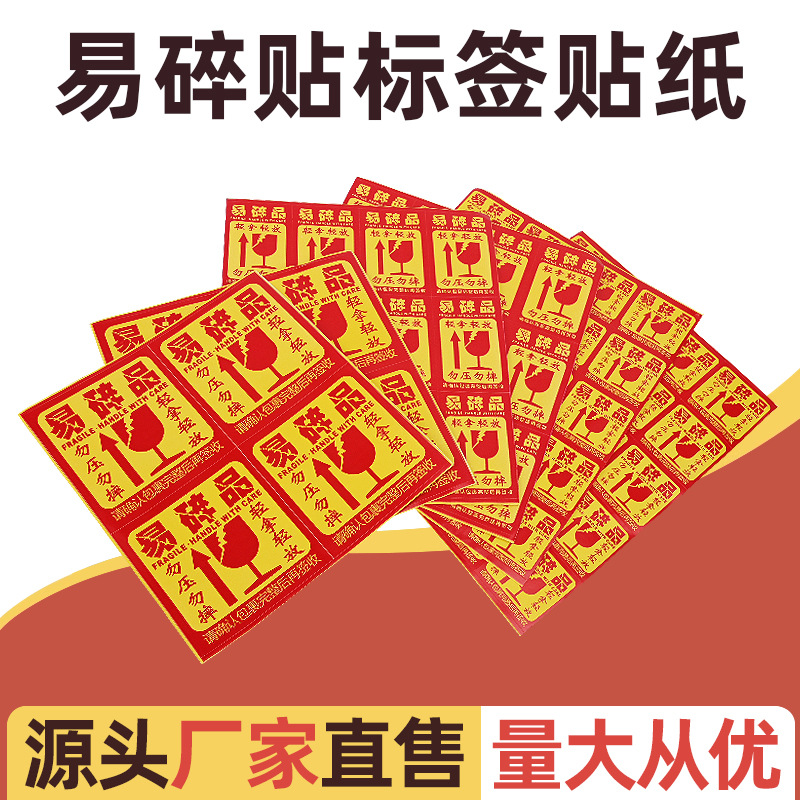 易碎贴标签贴纸小心物品轻放易损勿压稀碎轻拿快递易碎品大号贴标
