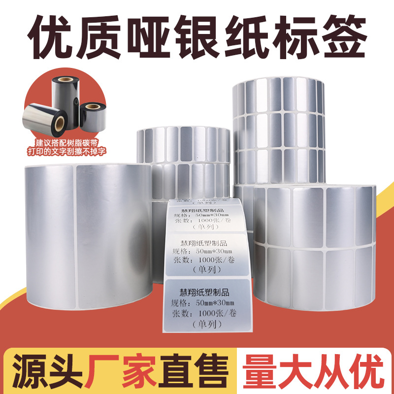 哑银PET不干胶标签贴纸防水撕不烂标签打印纸设备标签纸条码标签