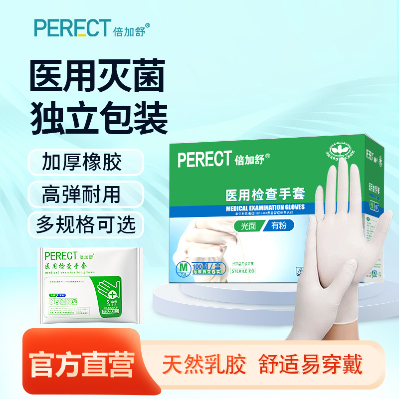 厂家直销倍加舒医用检查手套灭菌单双独立包装乳胶一次性手套