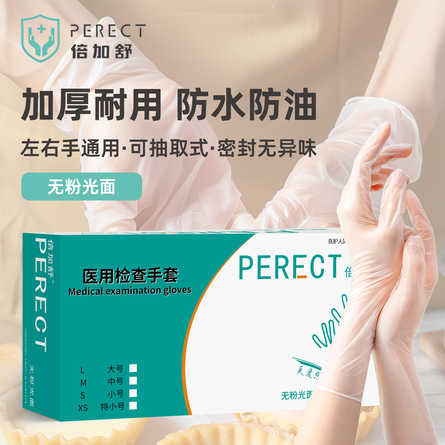 厂家直销倍加舒医用检查手套无粉抽盒牙科检查护理家用一次性手套
