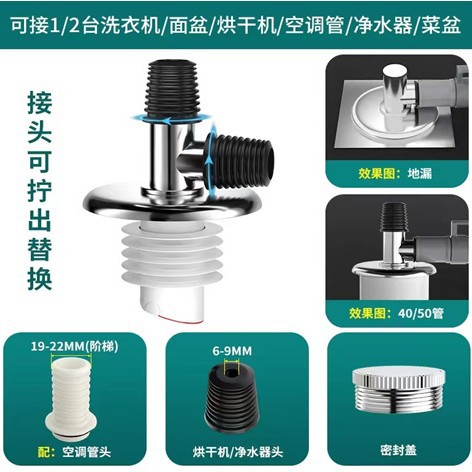 洗衣机下水管地漏防堵塞双排接头二合一防溢地漏下水三通神器批发