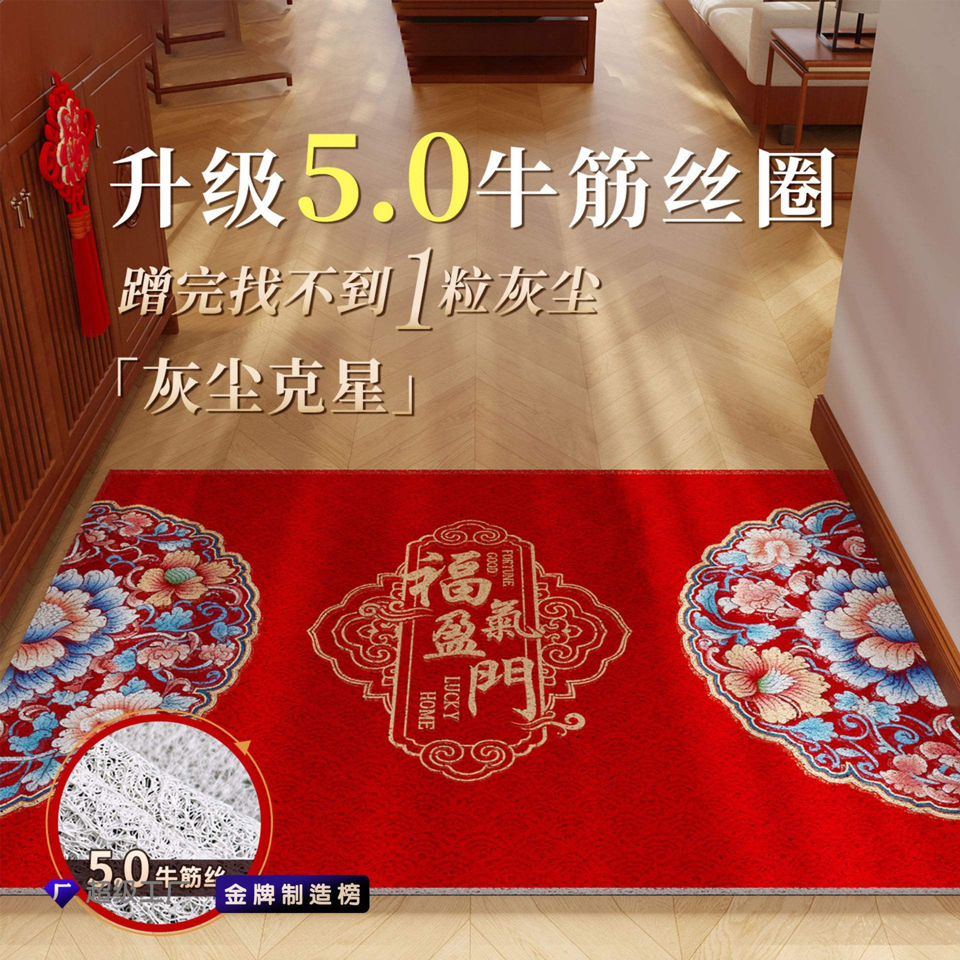别墅入户门地垫高弹加厚弹力网丝圈进门地垫马年新款室外红色脚垫