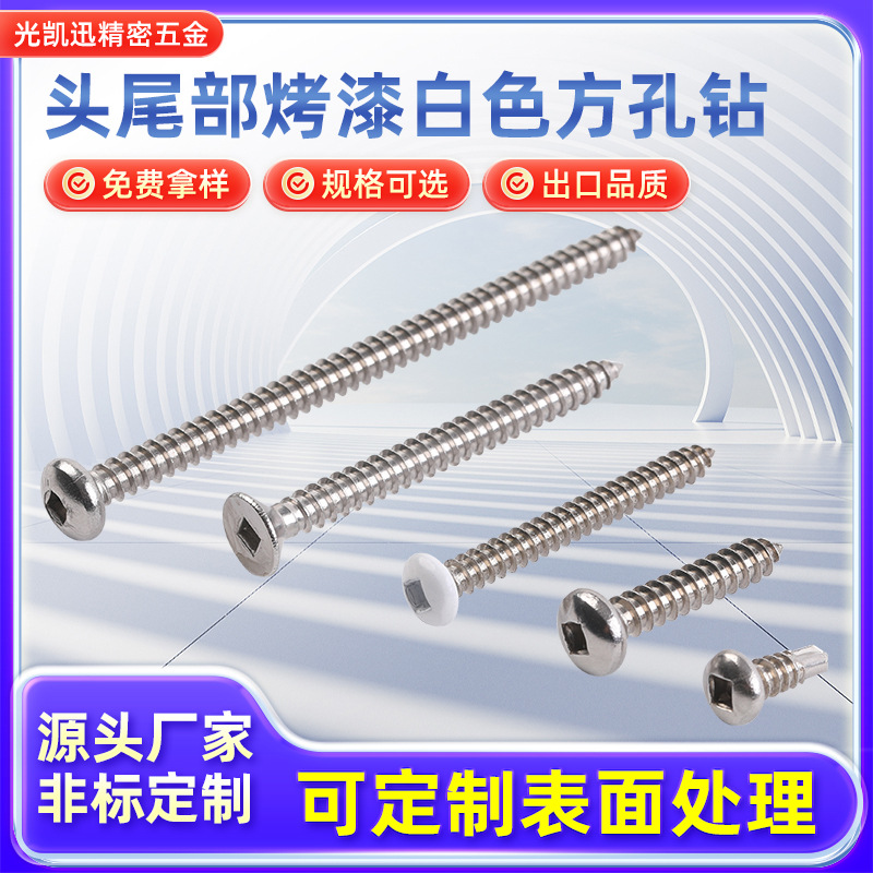 定制方孔钻尾螺丝头部烤漆白色建筑钢结构装修专用高强度碳钢