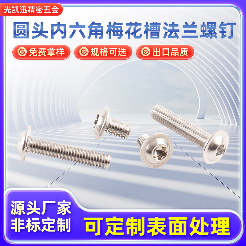 ISO7380-2圆头内六角梅花槽法兰螺钉盘头带垫螺丝304不锈钢高强