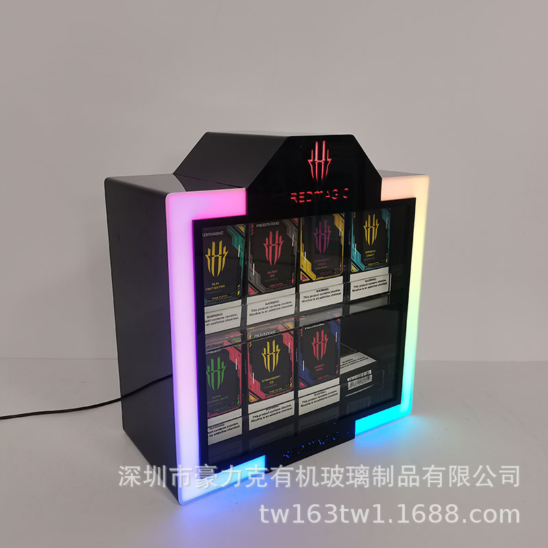 亚克力雾化器UV印刷展示架 口含烟LED发光展示柜工厂直供跨境电商