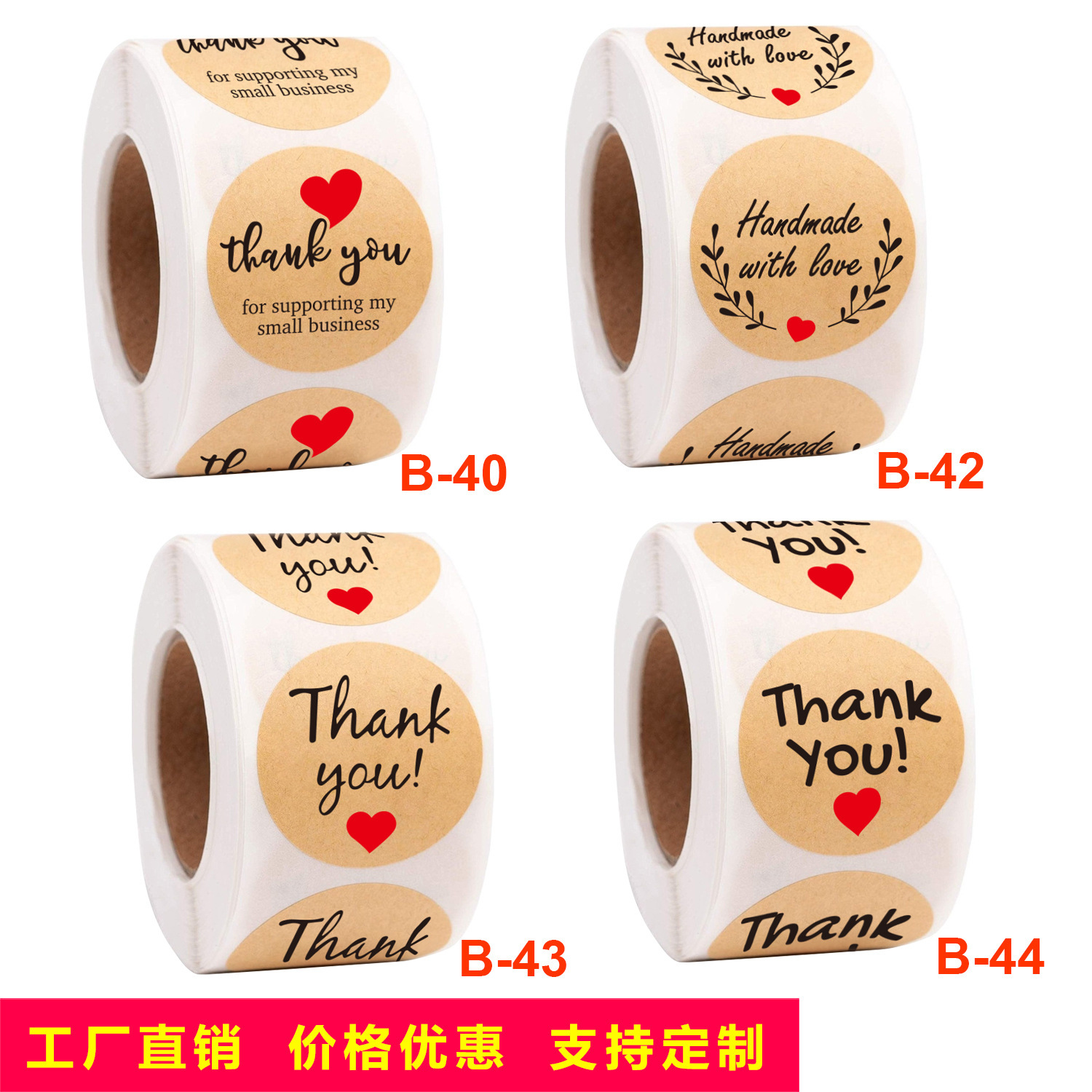 厂家现货批发卷装牛皮感谢手工烘焙 购买商业装饰不干胶贴纸标签