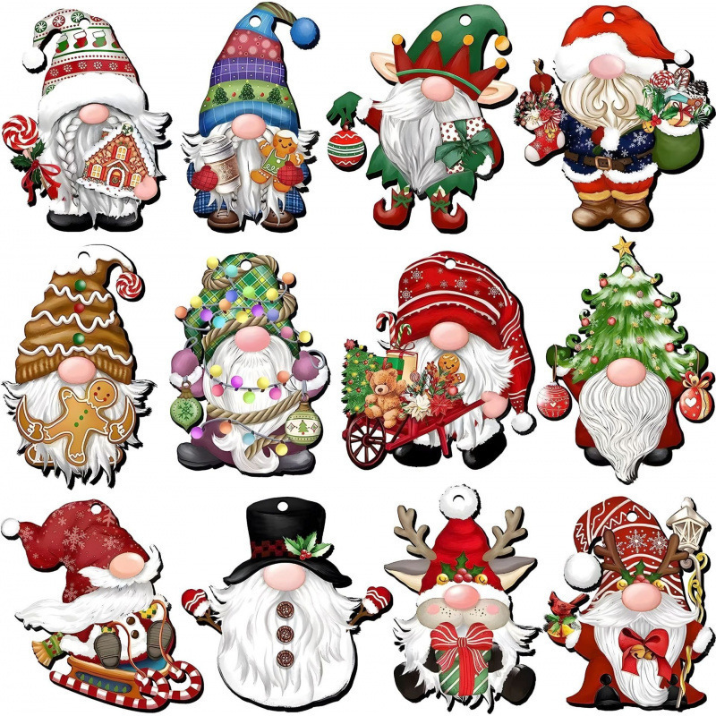 24件圣诞小矮人木制装饰品悬挂在圣诞树上用于圣诞节装饰派对用品