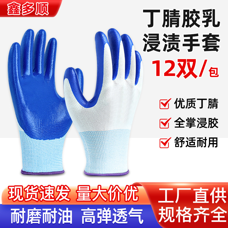 厂家自营工业级防护 丁腈胶乳浸渍手套 防滑耐磨加厚耐用劳保手套