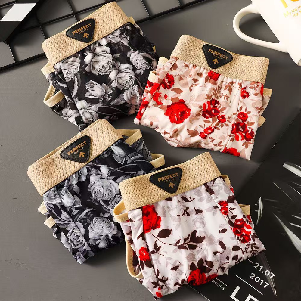 慕朗森浪漫玫瑰~夏季冰丝男士内裤潮流舒适平角裤性感薄款印花裤