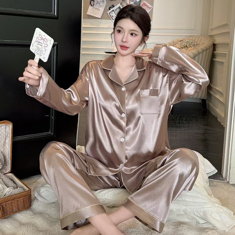 YUZHAOLIN法式减龄睡衣女春秋新款简约波点长袖长裤冰丝家居服时