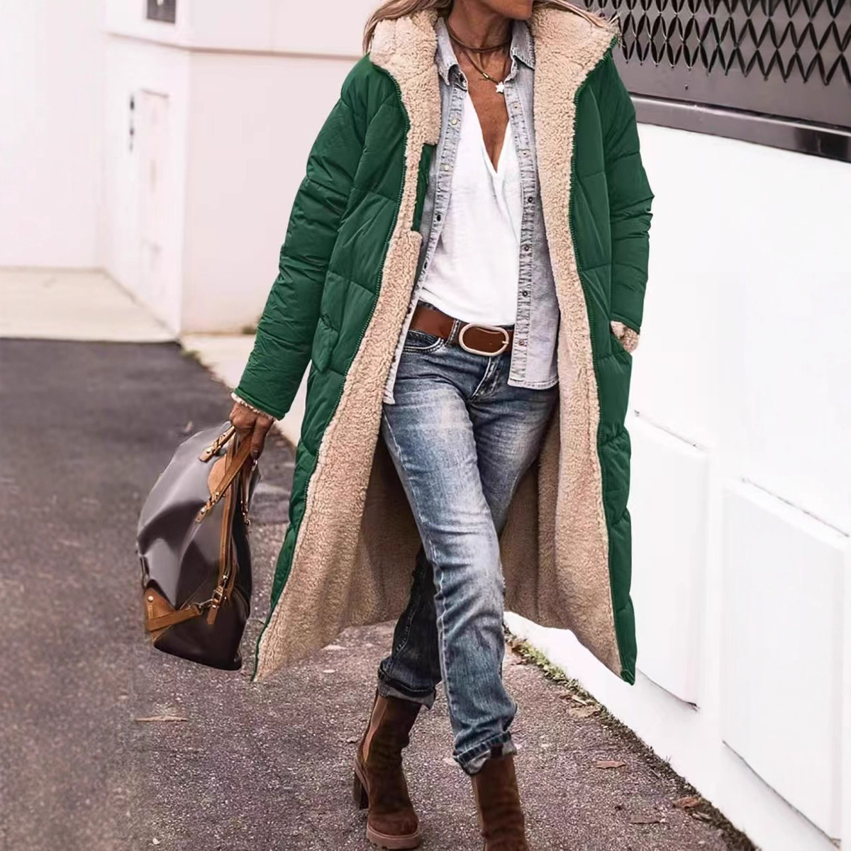 2025跨境新款女装棉服欧美多色多码双面连帽穿时尚通勤加长款大衣