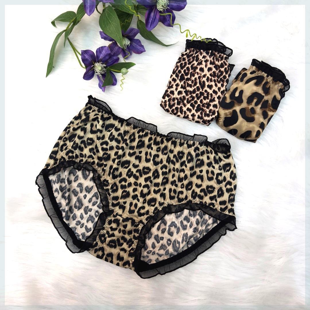 瑟萱娅蕾丝中腰冰丝豹纹女士三角内裤大码无痕性感时尚豹纹内裤棉