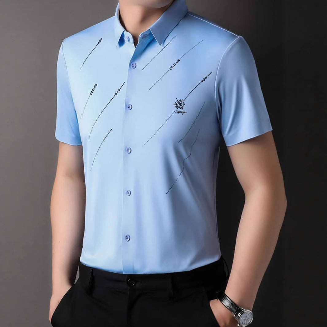 拉图2025男士短袖无痕衬衫高弹夏季条纹百搭时尚商务潮流衬衣