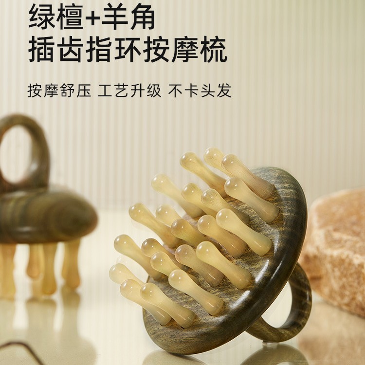 初心羊角梳指环梳按摩头皮经络梳家用羊角头部多功能洗头梳子
