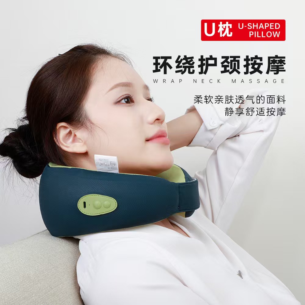 尤柯宝新款U型按摩枕便携式揉捏热敷颈椎按摩仪家用充电多功能肩