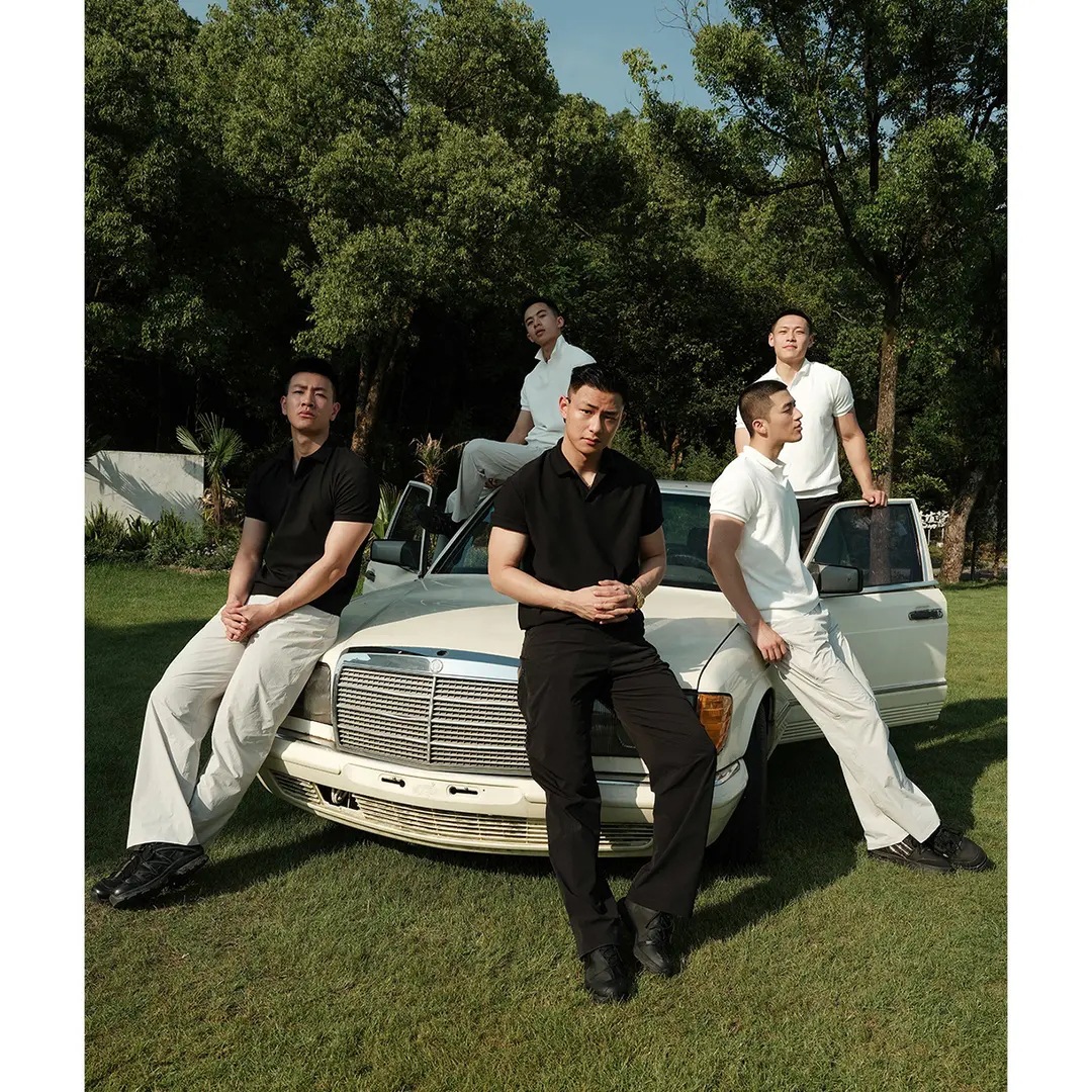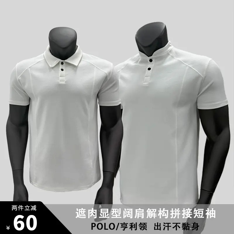 思铂夏季男士解构宽肩POLO衫短袖宽松遮肉健身休闲亨利t恤T恤上衣