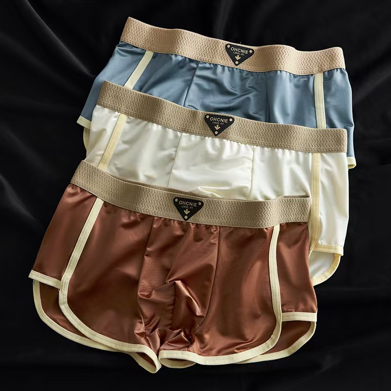 针镒高级感轻奢缎面冰丝男士薄款无痕透气舒适夏季青年潮流中腰