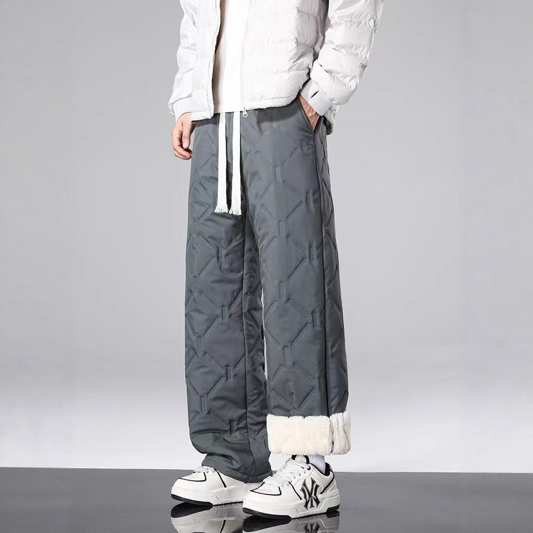 羊羔绒裤子男款秋冬加绒加厚休闲直筒裤男士阔腿运动长裤冬季卫裤