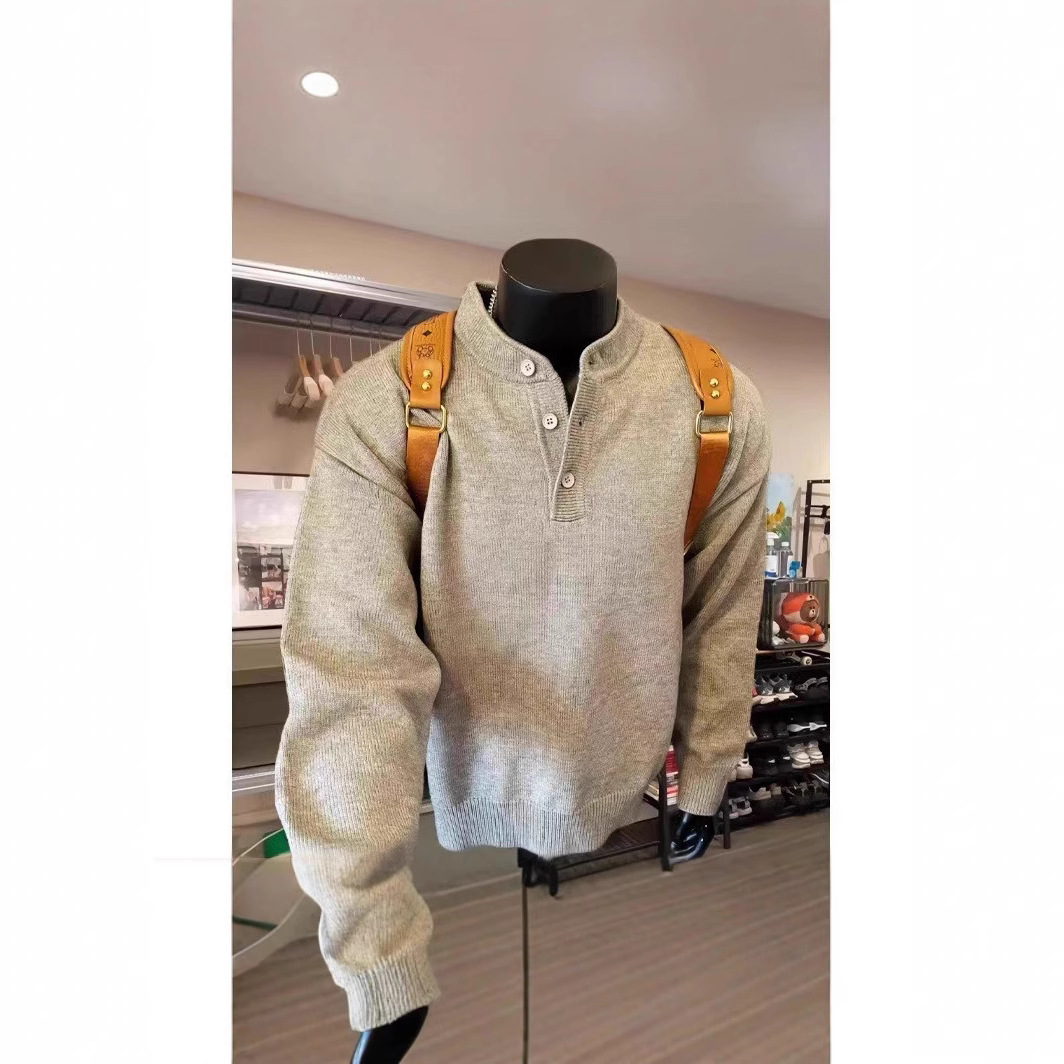 臣涉花灰色复古亨利领毛衣男冬季高级感美式慵懒风cleanfit内搭