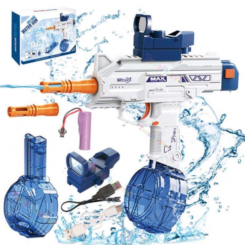 跨境m火光灯光电动连发水枪全自动连射uzi户外吸水玩具儿童水枪