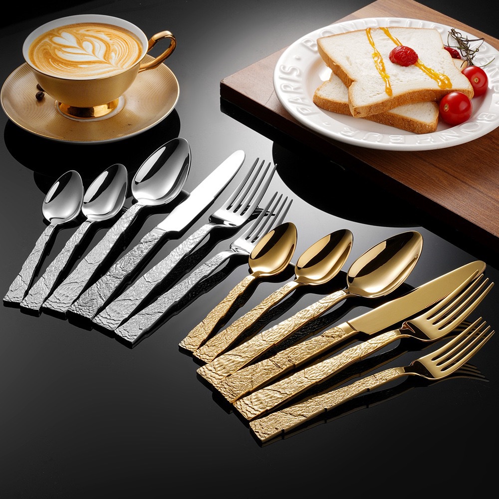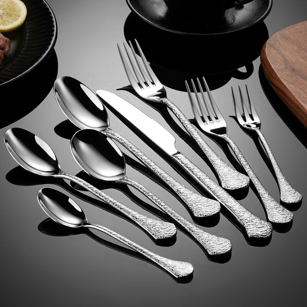 跨境304不锈钢加厚刀叉勺餐具套装 复古浮雕高颜值刀叉勺甜品叉勺