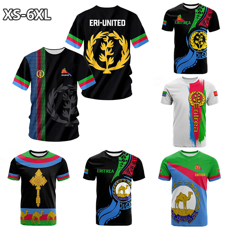 厄立特里亚国旗图案3D印花跨境短袖t恤复古上衣厂家直销动物印花