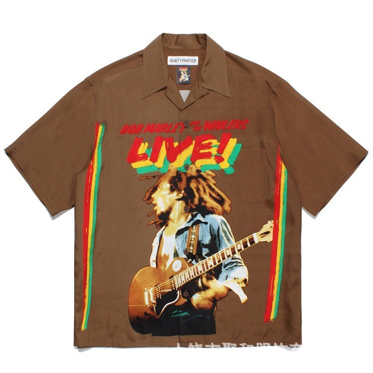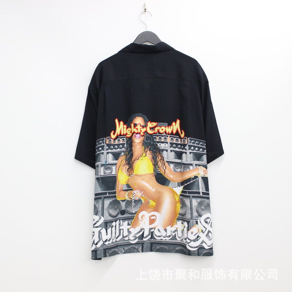 外贸男装货源街头潮牌小众基础人像印花短袖宽松衬衣男3D数码印花