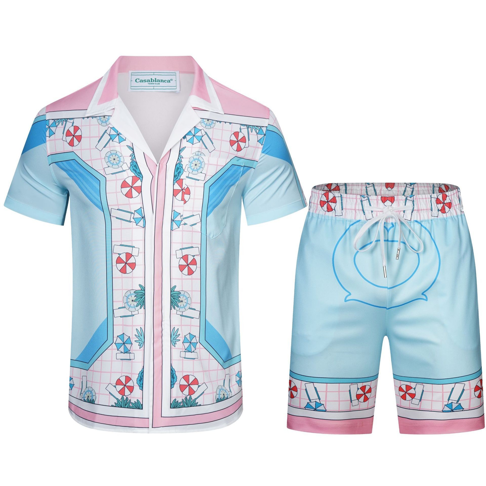 2025时尚潮牌欧货 夏季Ca短袖衬衫 沙滩裤套装男女同款3D印花图案