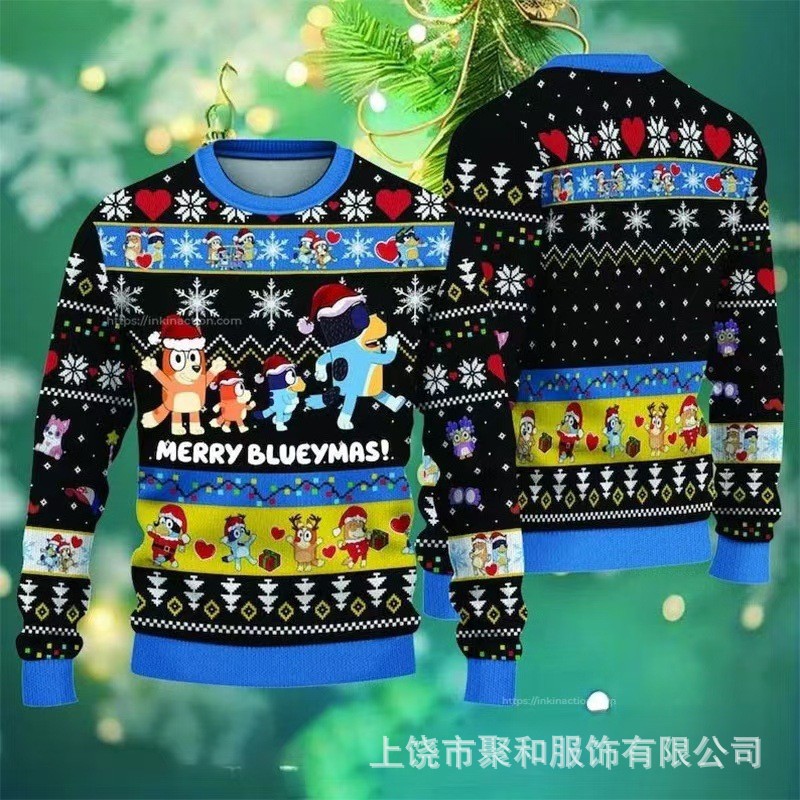 2025春秋新款圣诞老人图案圆领卫衣男女同款3D数码印花万圣节上衣