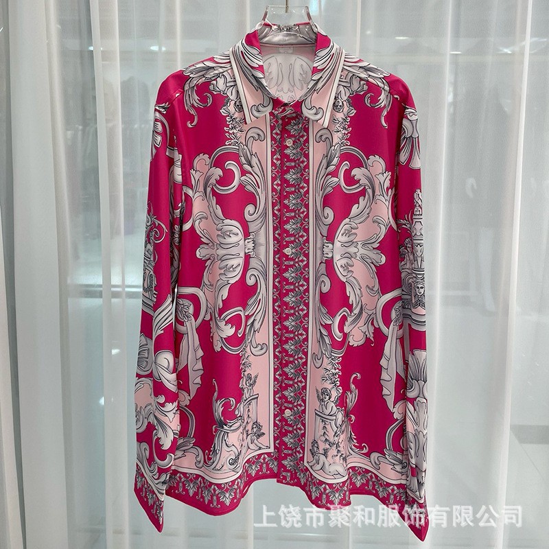 2025早秋新款欧美潮流跨境外贸数码印花男士长袖西装领衬衫衬衣潮