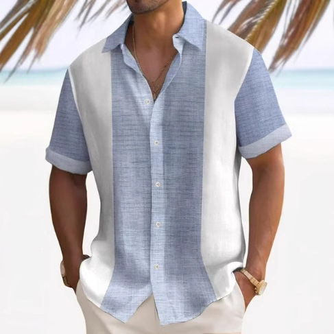 男士休闲时尚潮流百搭新款古巴领衬衫套装舒适透气适合户外旅游.